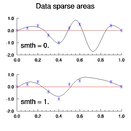 This example can be created using NCL. It demonstrates how to use the Csagrid package to find an approximating cubic spline for one-dimensional input data (Csagrid is part of the Ngmath library). The name of the source file for this example is nm15n.ncl.