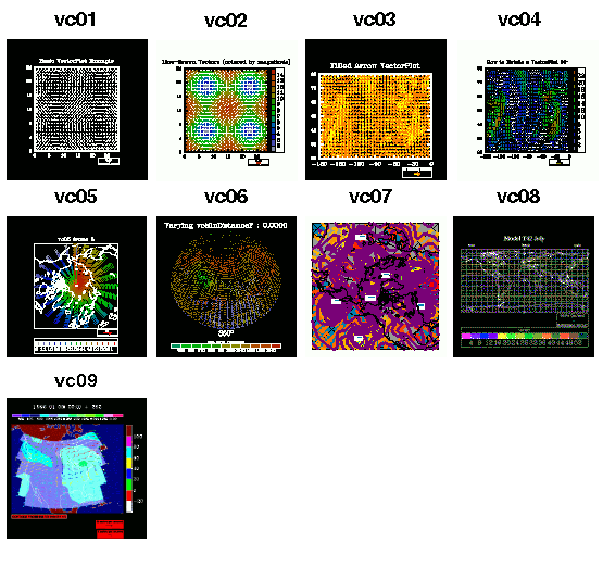 This module is a graphical index to the HLU and NCL NCAR Graphics examples that generate vector plots. Click on one of the example graphics below to link to information about how to create the graphic and how to access the code and data that were used to generate the plot.